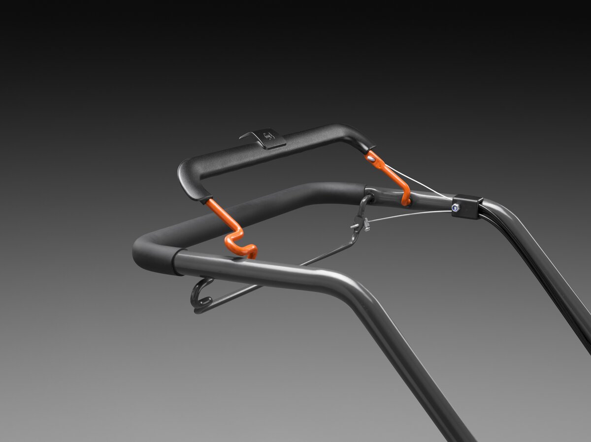 Jednoduché nastavenie výšky rukoväte Jednoduché uchopenie na prednej a zadnej časti pre zdvíhanie kosačky pri prenášaní do skladu, autá alebo pre prenášanie po schodoch.