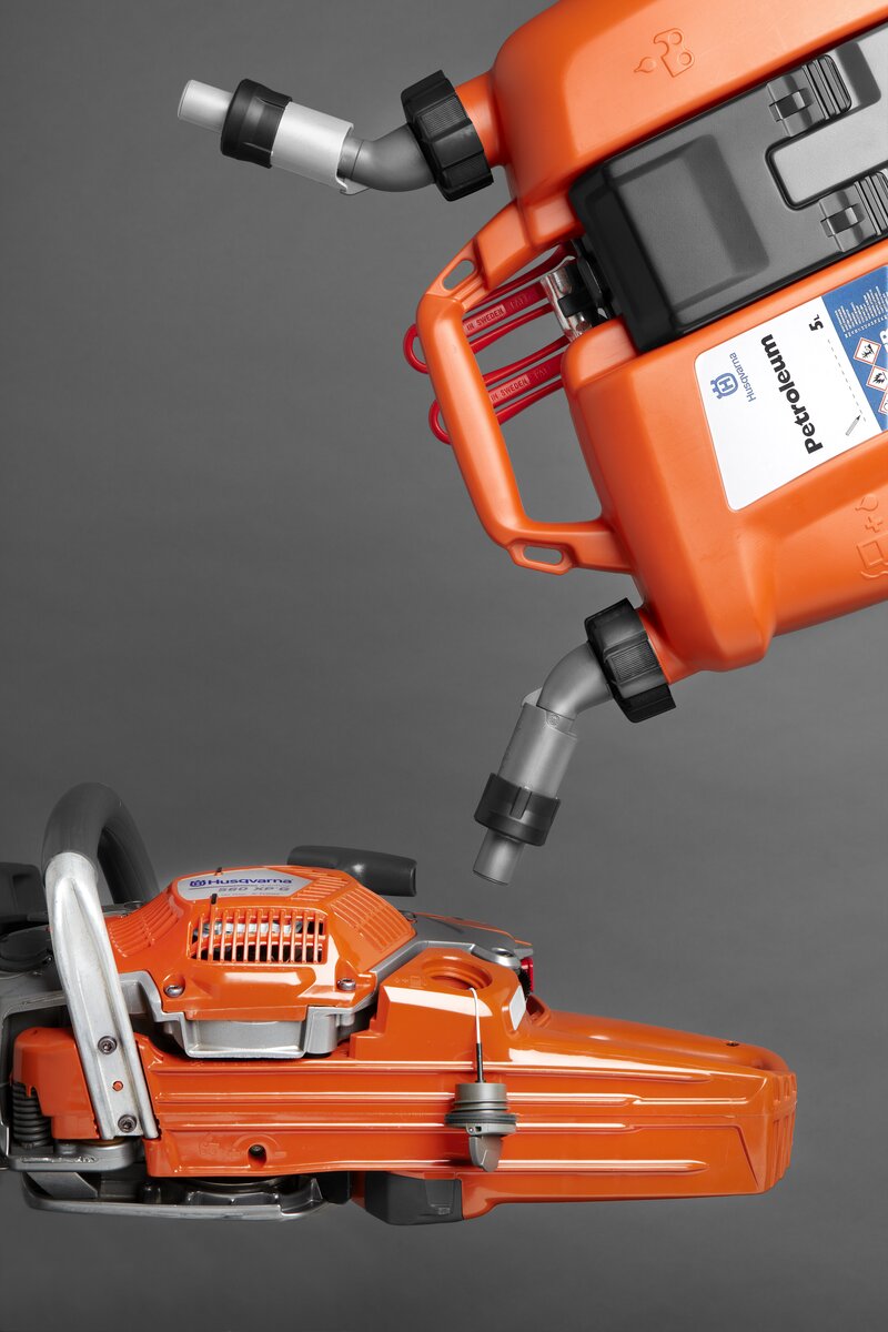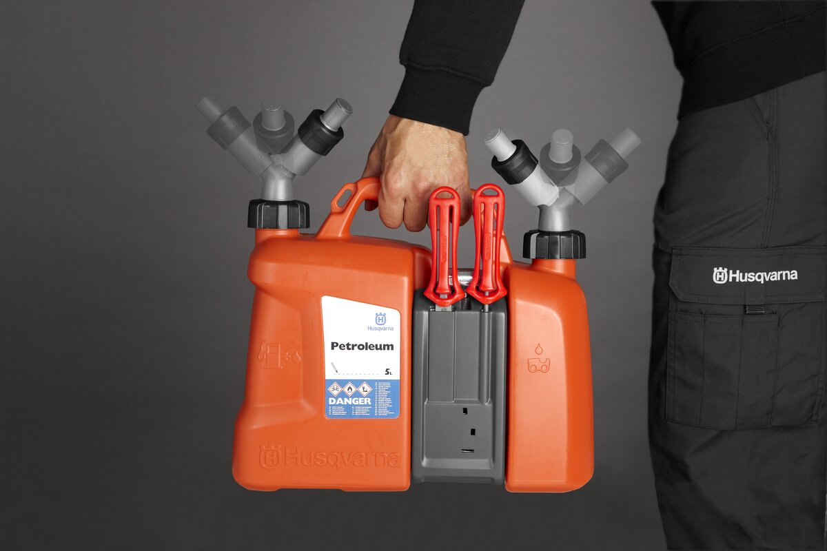 Náš inovovaný kanister Combi umožňuje rýchlo doplniť palivo bez strát. Rozmery oboch kanistrov boli navrhnuté tak , aby zodpovedali optimálnemu pomeru paliva a reťazového oleja (5 l / 2,5 l) . Tento nový kanister Combi má zabudovanú priehradku pre často používané náradie a náhradné diely, ktoré potrebujete k práci. Schválené v súlade s odporúčaniami OSN.