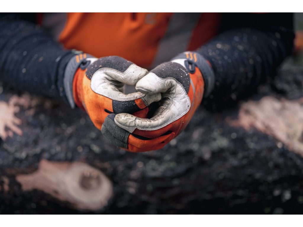 Kožené rukavice na profesionálne práce s reťazovou pílou