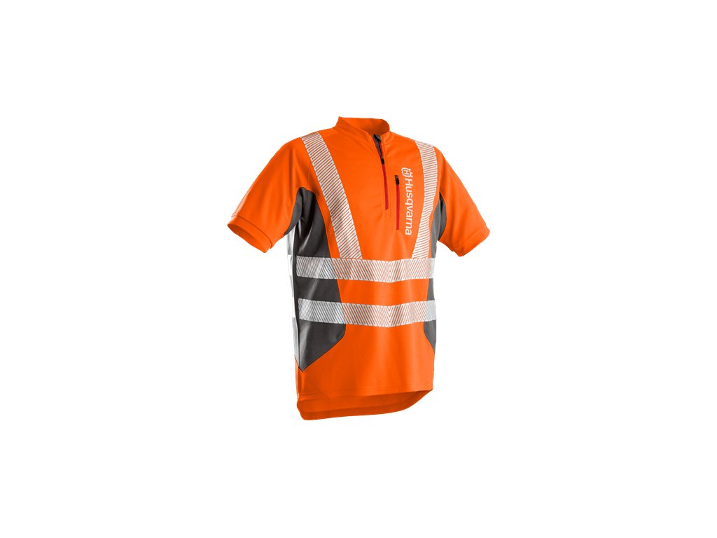 Pracovné tričko s krátkym rukávom a zapínaním na zips, s predĺženým chrbtom a ľahko prístupným predným vreckom na zips. Je ušité z materiálu, ktorý odvádza vlhkosť z tela a udržuje sucho a pracovný komfort. Tričko je doplnené pruhmi z reflexného materiálu s vysokou viditeľnosťou a vyhovuje norme ISO EN 20471 (trieda 2).